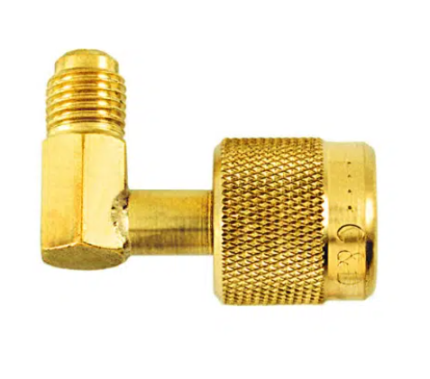 When attached to an access fitting, the “sure-seal” retaining coupler automatically open and depresses the valve core all in one action. When disconnected, it traps refrigerant in the charging hose. Leave it permanently installed on the end of the hose. The seals are compatible with newer refrigerants, and if internal parts need replacing, a parts kit is available.