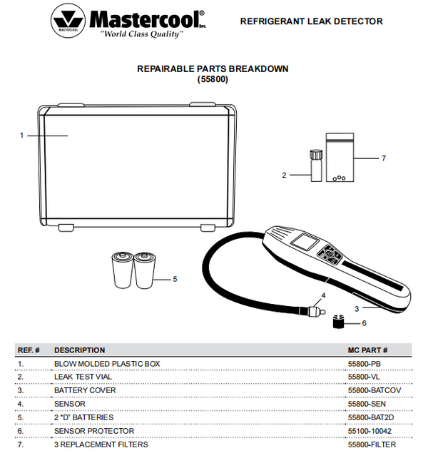 - One (1) Metal Oxide Gas Sensor designed explicitly for the Mastercool Electronic Leak Detector 55800 with LCD Display. A pivotal component ensuring the detector's peak performance and precision.