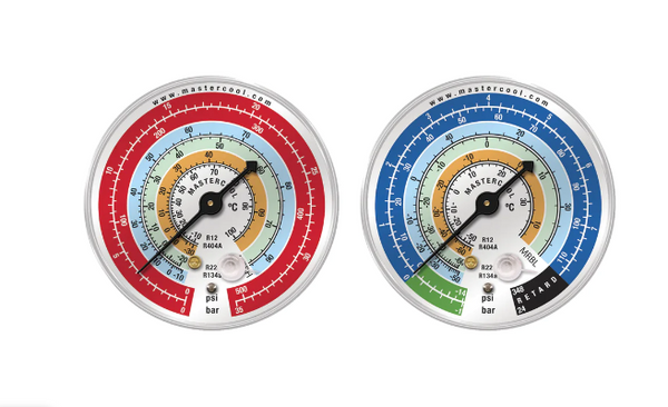 - 1 × Mastercool MRBH1 80 mm high-side gauge (spare part, face marked for R22/R404A/R407F/R134a).