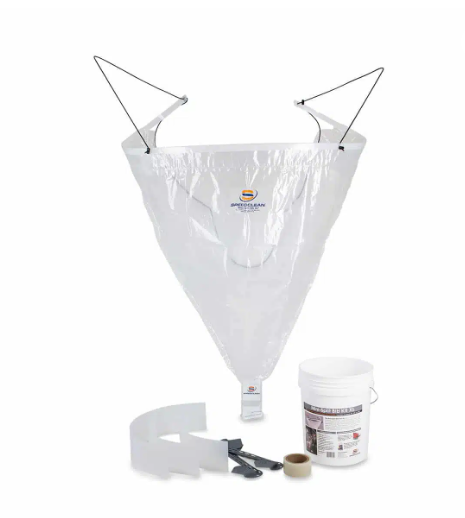 The system is simple to use. Simply slide the brackets in behind the corners of the mini-split air handler. Attach the bib and protective wall plates and tighten them. Then place the bottom of the bib funnel into the included 5-gallon bucket. All coil cleaner, water, and debris are safely funneled into the 5-gallon bucket. No mess and no fuss. And when you are done, dry it and store it in the included bucket for your next use!