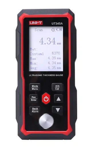 UT345A is an intelligent ultrasonic thickness gauge that adopts the latest high-performance and low-power consumption microprocessor technology. Based on the principle of ultrasonic measurement, it can measure the thickness and sound velocity of metal and other materials. It can detect the thinning of pipes and pressure vessels after corrosion and can make accurate measurements of plates and machined parts. The gauge can be widely used in petroleum, chemical, metallurgy, shipbuilding, aviation, aerospace, and other fields.
