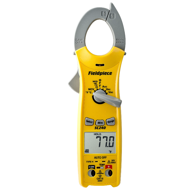 Some technicians use the SC240 as their everyday DMM, and others as a backup or second meter to get more testing done in less time. This compact HVACR clamp meter was designed to make your job easier, safer, and faster no matter where you choose to rank it in your bag