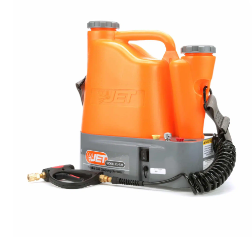 Clean HVAC coils the fast way. The CoilJet® from SpeedClean is a complete portable AC coil cleaning system. It carries all the water and coil cleaner you need to clean up to five, 5 Ton units with 125 psi pressure. It is specifically designed for portable condenser HVAC coil cleaning. It replaces the too powerful pressure washer – and the not powerful enough pump sprayer – to quickly clean coils without damage to sensitive fins, even microchannel coils!